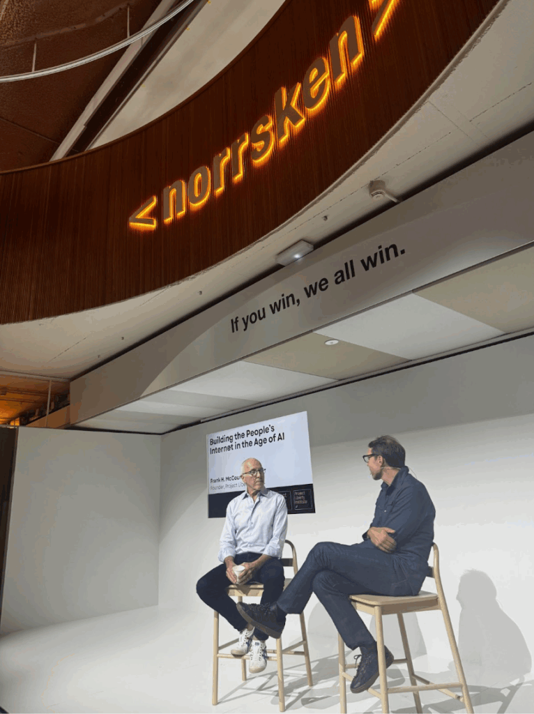 The week opened with a main stage conversation between McCourt and Johan Attby, General Partner at Norrsken’s Evolve accelerator. McCourt discussed the need to catalyze impact entrepreneurship for a digital economy that restores human agency and rewires the incentives of the current internet. He emphasized that today’s digital infrastructure was never designed to serve people–it was designed to extract and centralize value. To build a more inclusive and trustworthy AI future, McCourt argued, society must rebuild its foundational infrastructure to ensure technology advances the public good. He highlighted Project Liberty’s efforts to advance open, interoperable systems and next-generation infrastructure, enabling entrepreneurs and investors to design a more human-centered digital future.