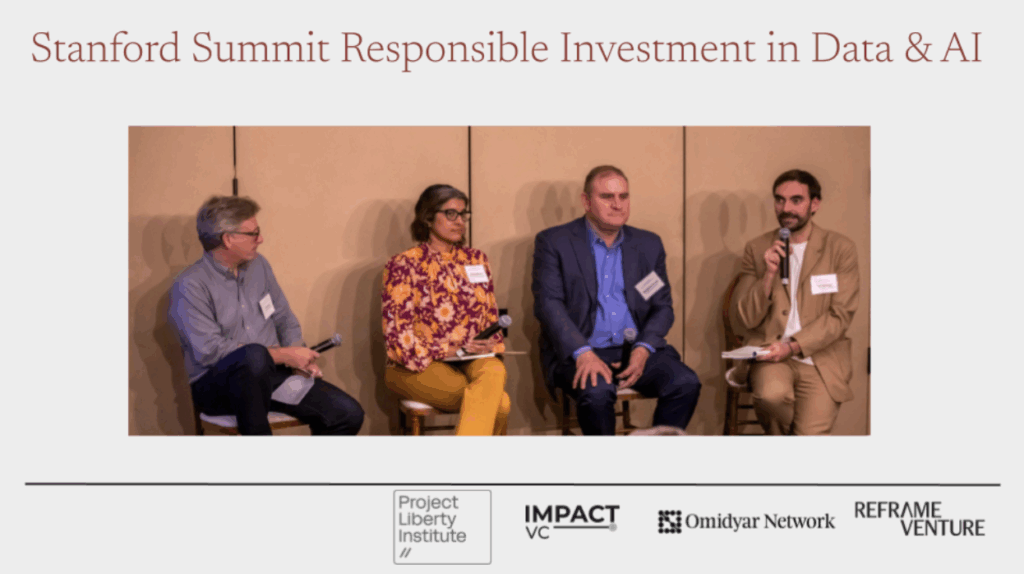 On November 13, 2025, the Project Liberty Institute (PLI), in collaboration with its strategic partners ReframeVenture, Omidyar Network and ImpactVC, convened one of the most significant investor gatherings to date on the future of responsible investment in artificial intelligence and data technologies. Held at Stanford University in Palo Alto, the Stanford Summit Responsible Investment in Data & AI brought together a powerful cross-section of leading technologists and the investment ecosystem, including leading limited partners (LPs) and venture capitalists (VCs) representing more than four trillion [$] in capital across the United States and Canada.